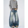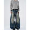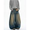 Kisko American Retro Washed Distressed Yellow Mud Curved Knife Jeans Unisex Design Loose Straight Pants Trendy