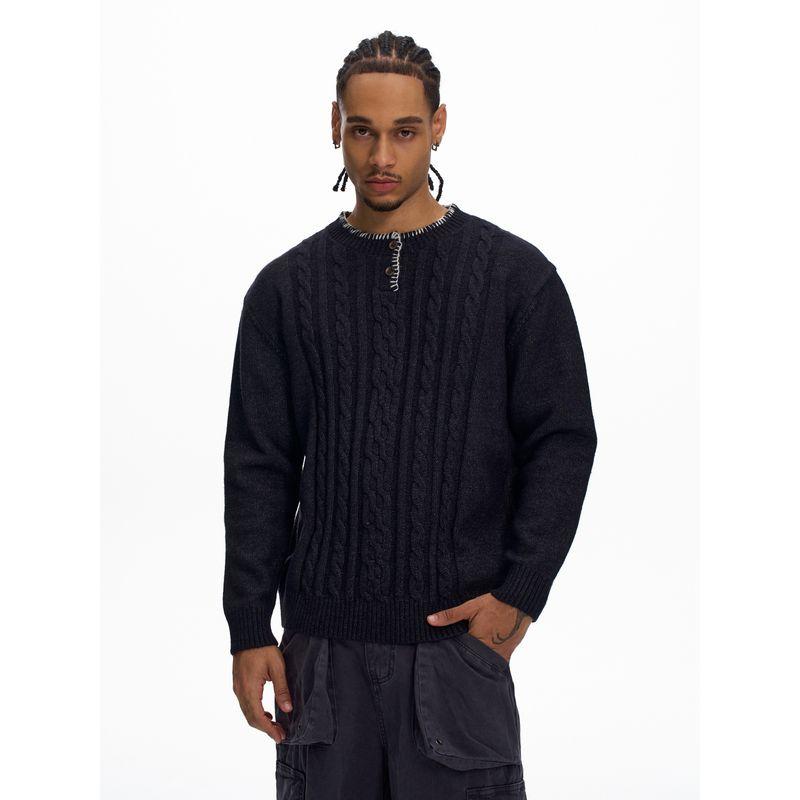 Kisko Autumn and Winter American-Style Henry Collar Hand-Stitched Cable Knit Sweater for Men and Women, High-End Casual Warm Knitwear