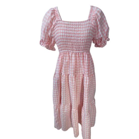 Mit Puffärmel kann dieses Damenkleid Sie elegant und süß aussehen lassen. Das Damenkleid zeichnet sich durch einen klassischen Karodruck aus, so dass es nie aus der Mode kommt.