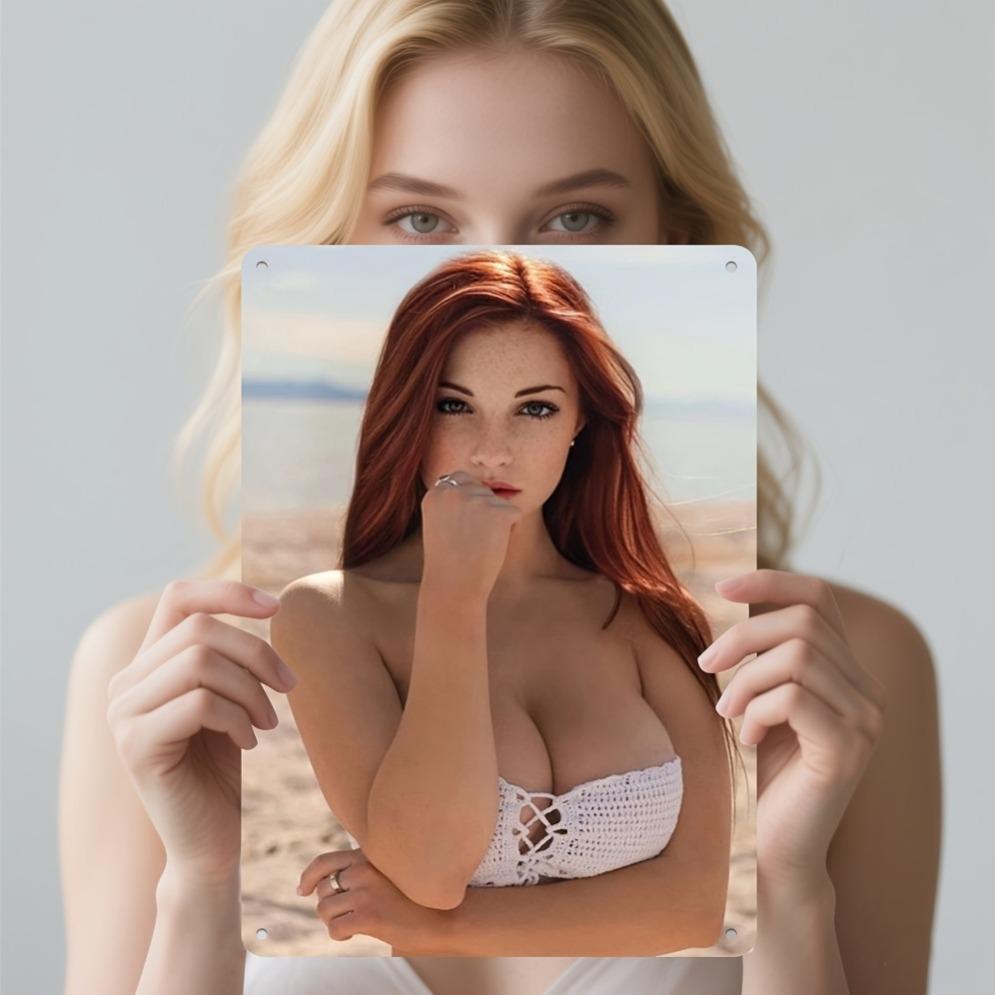 Vintage Metallwandkunst 2D Retro Strand Schild Rothaarige Dame Poster für Wohnzimmer Bar