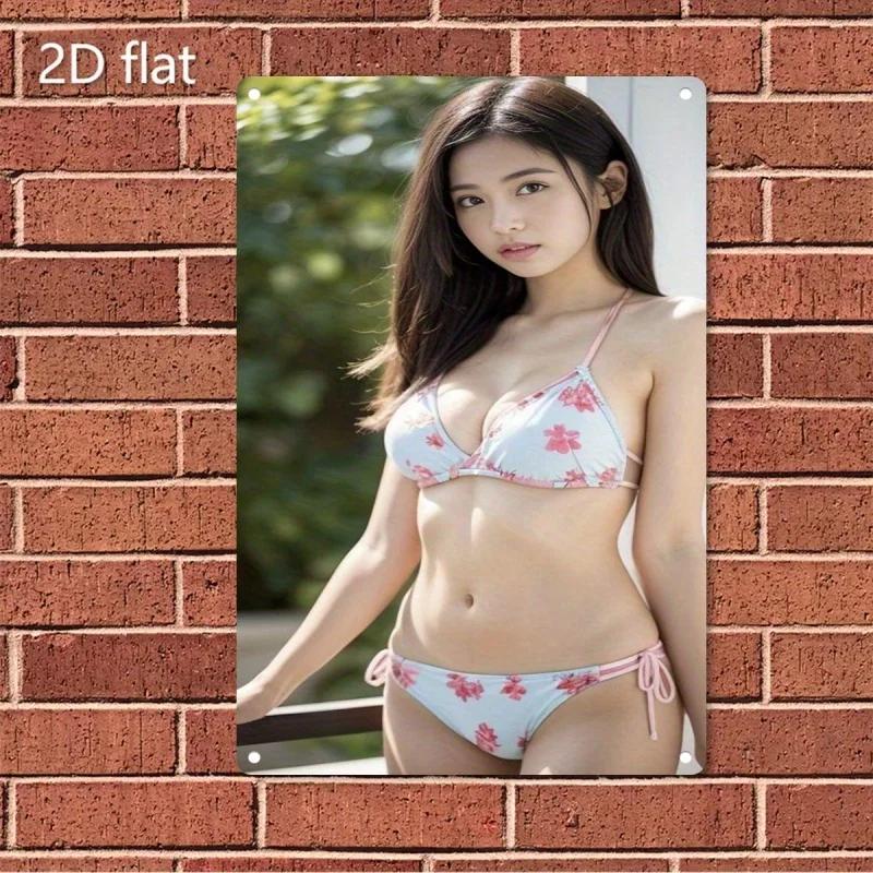 Retro Blechposter Wanddekoration Metallposter - Weiblicher Bikini Strand Kunstschild - Robuste Eisenplatte für Heimbar