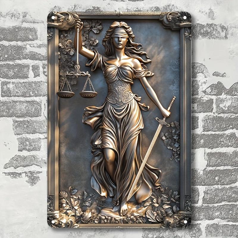 Vintage Aluminum Wall Hanging: Justice Goddess Design with Scales of Justice - Decorative Metal Plaque for Bar, Living Room