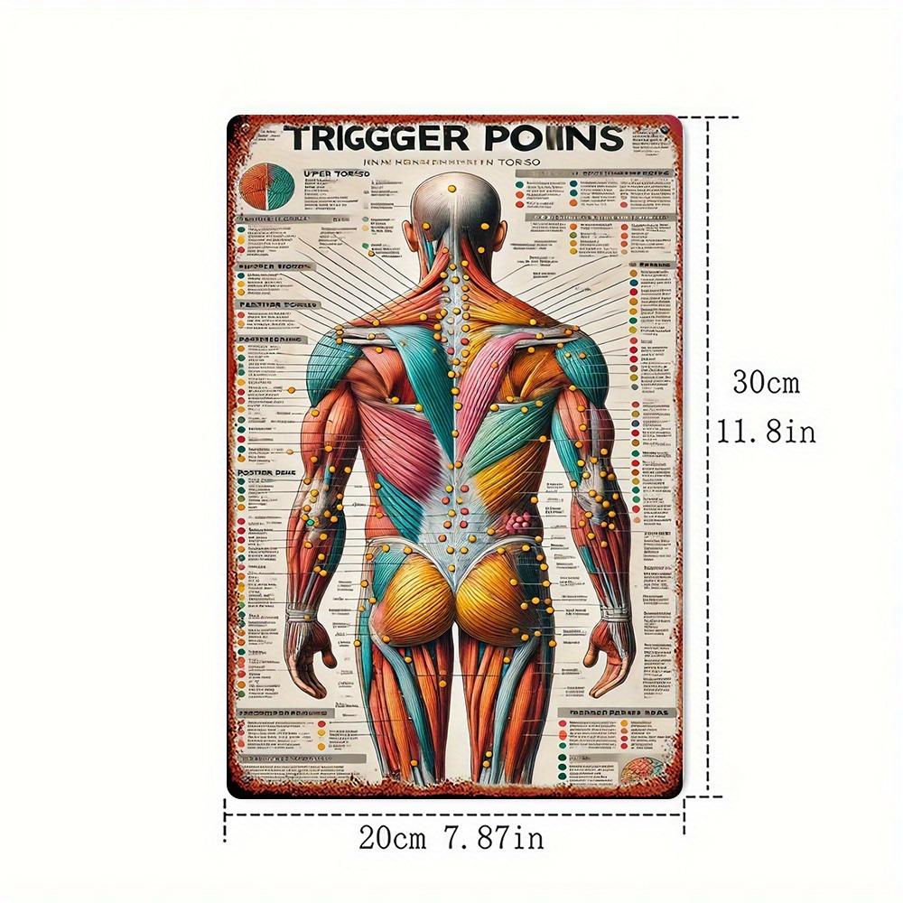 Akupunktur-Chart 20x30 cm - Menschliches Anatomie-Poster mit Triggerpunkten Meridianen, Langlebige Metall-Wandkunst für Akupunkteure Ther