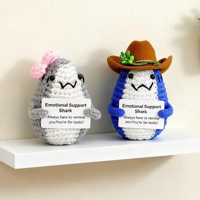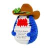 Funny Crochet Positive Energy Cowboy Hat Shark Doll With Card Home Room Decoration New Handmade Knitted Shark Ornament Gift