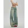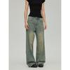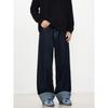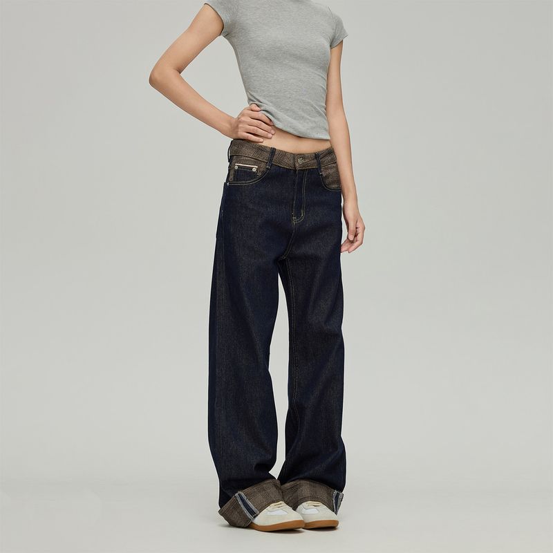 Black of Exit American Retro Color-Blocked Cuffed Hem Long Pants Trendy Brand Original Color Straight-Leg Jeans
