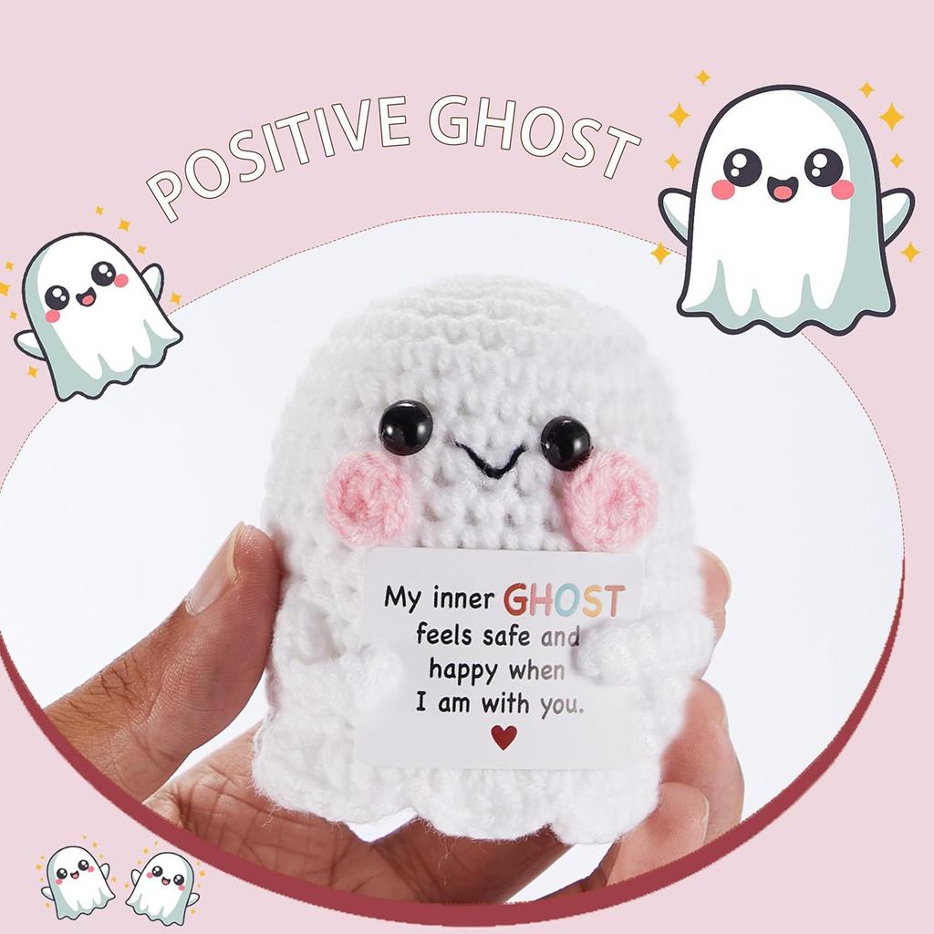 Lustige Positive Gehäkelte Geisterpuppe Mit Karte Halloween Heimdekoration Handgestrickte Schwarze Katze Geist Schreibtischverzierung Geschenke
