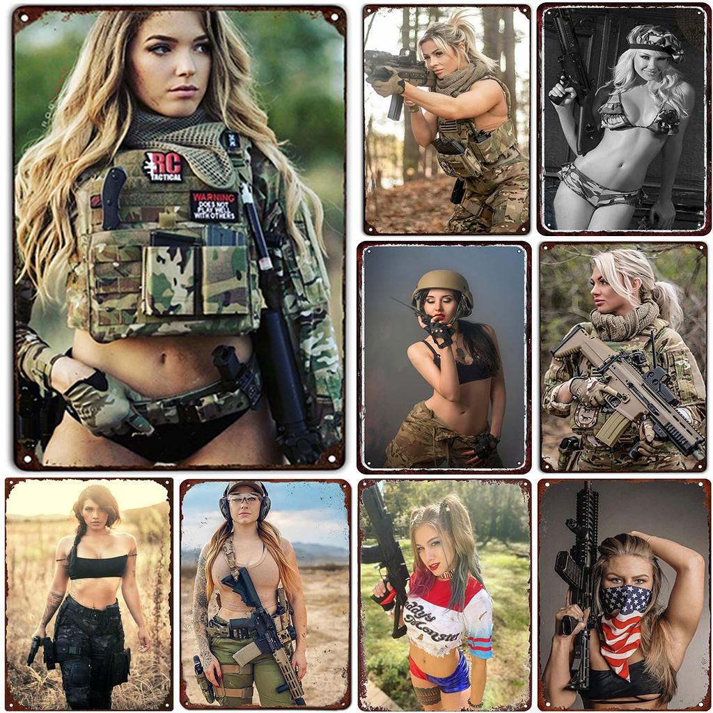 Vintage Metallblechschilder Militärische Pin-up-Mädchen Wandposter Schild Eisenmalerei Dekoration für Garage Spielzimmer Zuhause Café Club