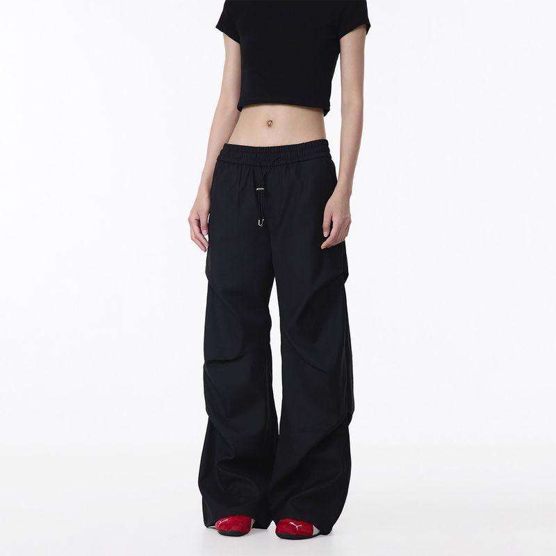 Black of Exit American-Style Three-Dimensional Cut Pleated Straight Casual Pants Unisex Trendy Wide-Leg Black Trousers
