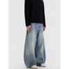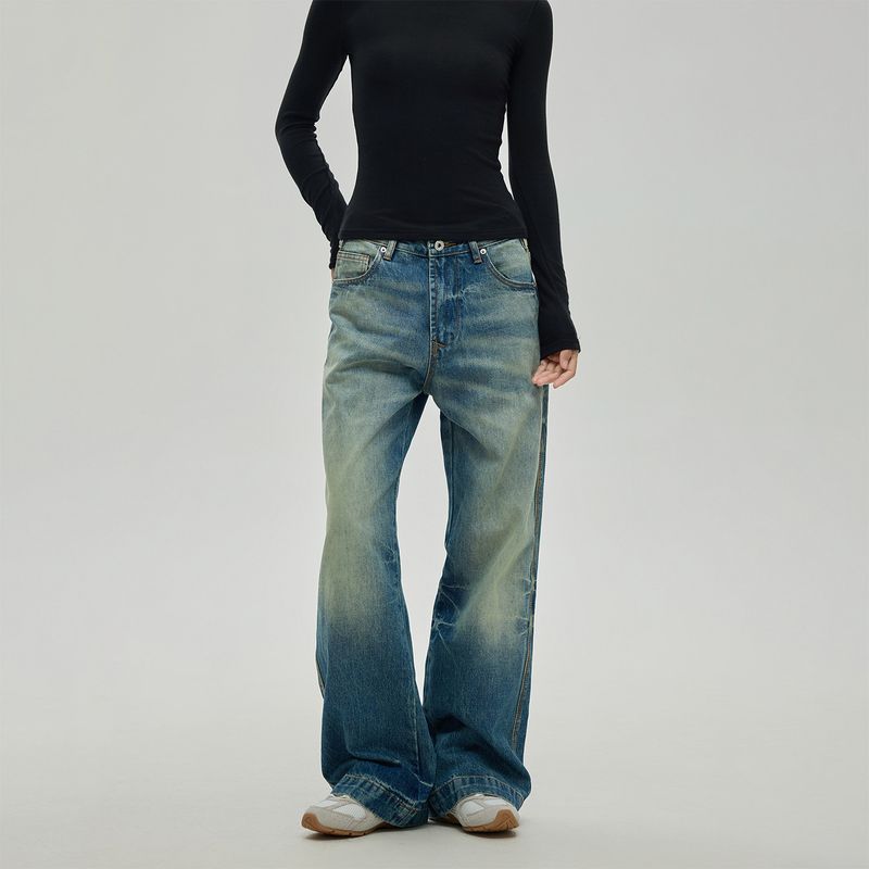 Black of Exit American Retro Washed Distressed Blue Slim-Fit Trousers Basic Versatile Jeans for Men