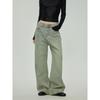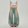 Black of Exit American-Style Washed Yellowed Vintage Straight-Leg Jeans with Unique Double-Waist Design Denim Pants
