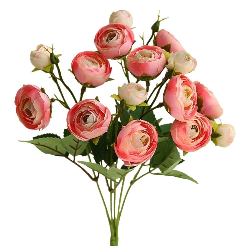 15 Köpfe Künstliche Rose Kamelie Seidenblumenstrauß Heim Hochzeitsdekoration für Tischaufsätze Blumenarrangement