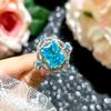 Elegante Luxus Farbige Schmucksets Funkelnder Meerblauer Zirkonia Stein Partyring Ohrringe Anhänger Halskette Für Frauen