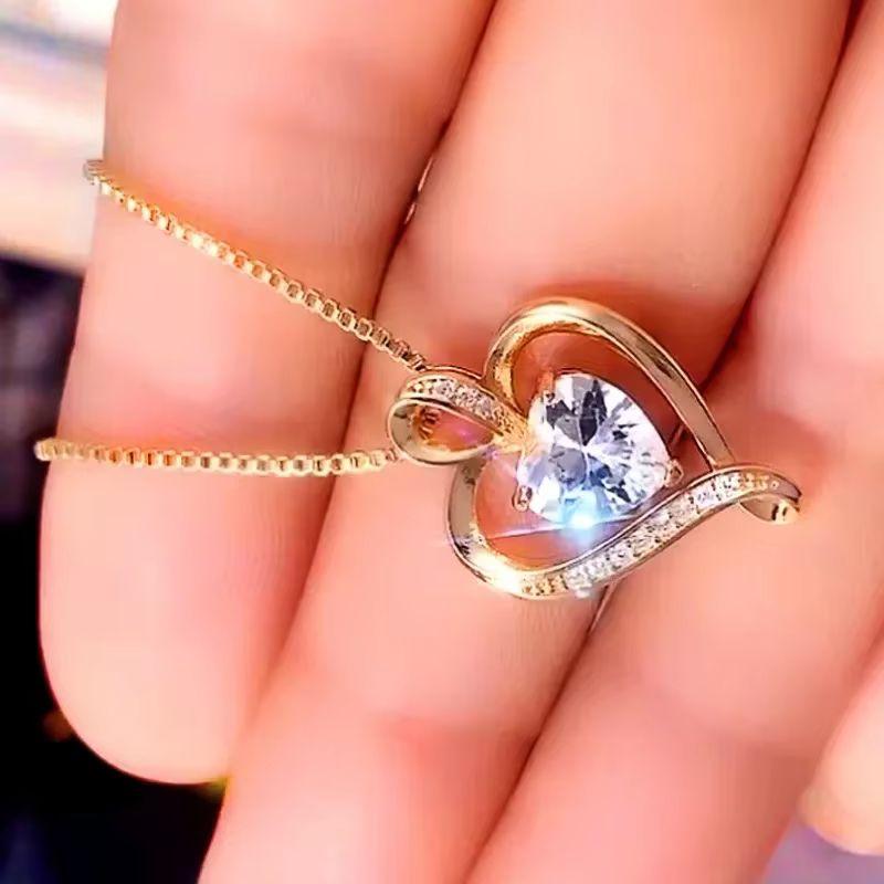 European And American Gold Heart-Shaped Zircon Simple Necklace For Women, High-End Fashion Temperament, Niche Design, Jewelry Wh