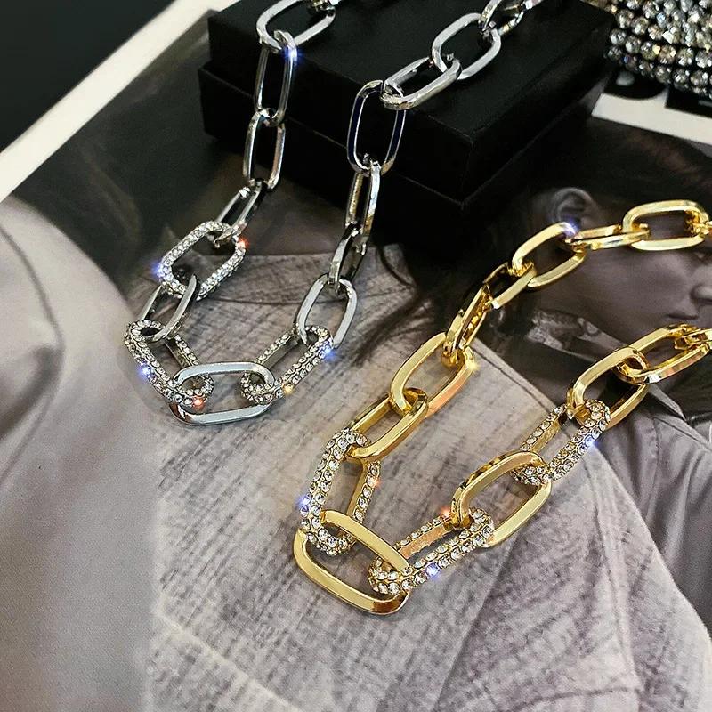 Hip-Pop Punk Bling Exaggerate Metal Link Chains Necklaces Fashion Sweater Chain For Women Men Unisex Geometric Jewelry