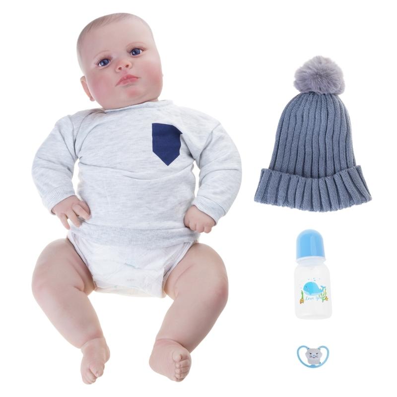23,62 Zoll Reborns Beliebte Schmollende Niedliche Mädchenpuppe mit Windelhauben Weiche Kuschelpuppe für Kleinkind Geburtstagsgeschenk