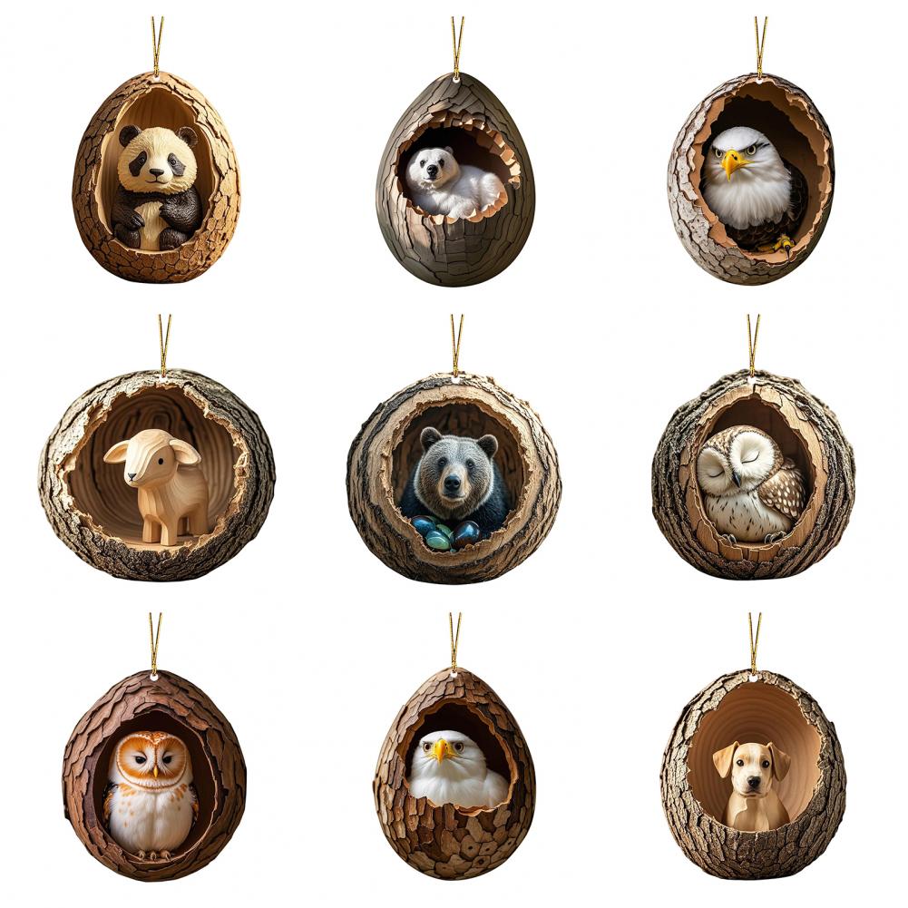 Christmas Tree Pendant Christmas Tree Ornament Set with Owl Dog Panda Forest Designs 2D Acrylic Christmas Tree Decoration