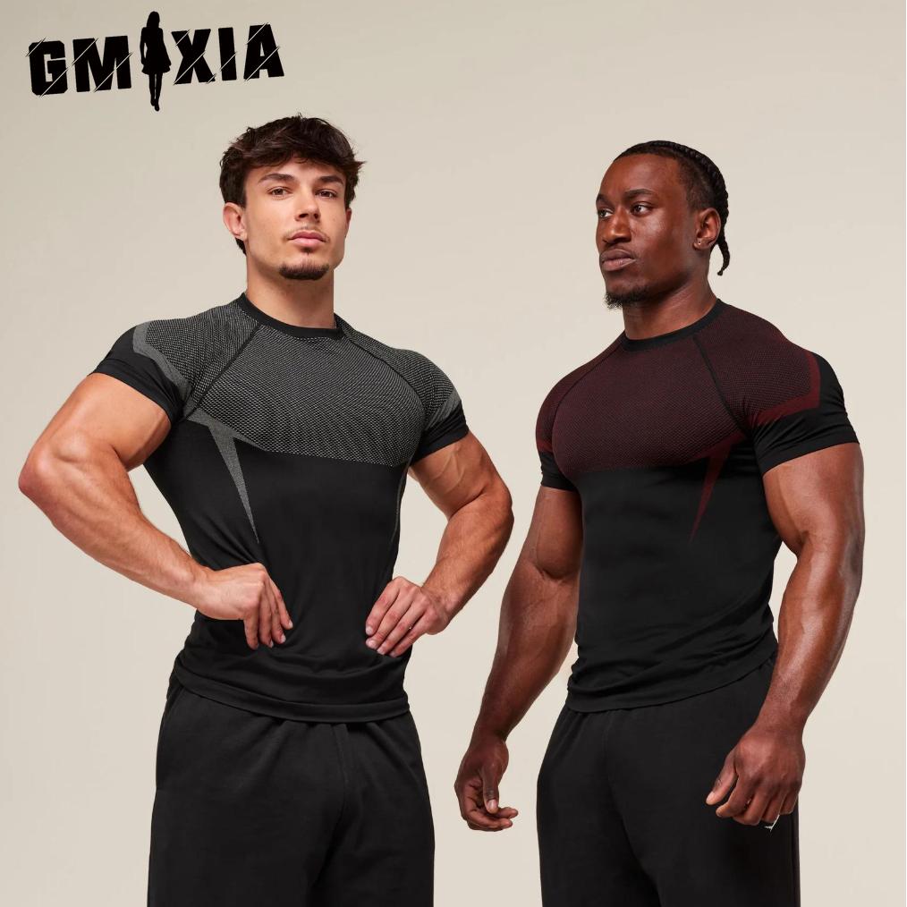 GMXIA Fitness Herren Laufen Schnelltrocknend Atmungsaktiv Enganliegend Kurzarm T-Shirt Herren Muskel Hai