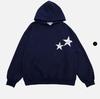 American trendy brand star print men's and women's hooded sweater oversize couple's top, with hat rope