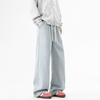 Wassup Wide-Leg Blue Jeans for Men, Spring and Autumn Trendy Brand Loose Pants, Washed Vintage High Street Long Pants