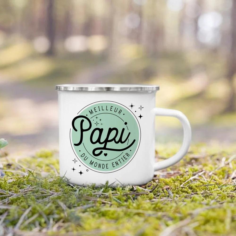 Französischer Druck Emaillebecher Kreative Kaffeetassen Getränke Wasser Milchbecher Emaillebecher Heimgetränkegeschirr Geschenk für Oma Opa Tante Onkel