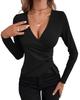 Gönnen Sie sich einen eleganten und sexy Stil mit diesem asymmetrischen V-Ausschnitt-T-Shirt, entworfen für die moderne Frau.. Dieses schmal geschnittene Oberteil, gefertigt aus einem einzigartigen Small-Pit-Streifenstoff, bietet eine schmeichelhafte Silhouette, die Ihre Kurven betont.. Mit einem einfarbigen Muster und langen Ärmeln vereint es nahtlos Komfort mit Raffinesse und ist somit eine vielseitige Ergänzung für Ihre Garderobe sowohl für Tages- als auch für Abendlooks.
