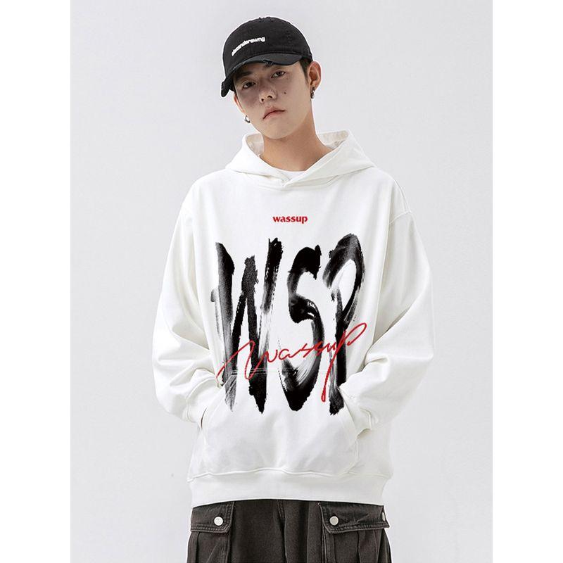 Wassup American-Style Inkjet Letter Sweatshirt for Men, Hooded, Autumn and Winter 2024 New Loose Casual Jacket Hoodie for Couples