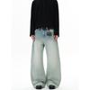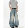 Kisko American Retro Bamboo Texture Contrast Stitching Deconstructed Scimitar Jeans Unisex Design Loose Straight Pants