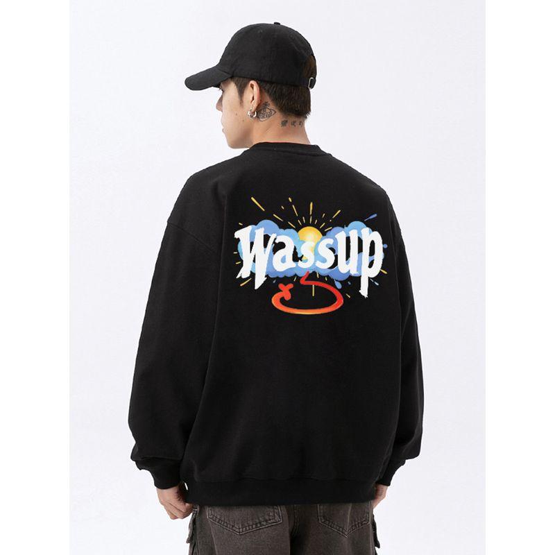 Wassup Cloud Sun National Trend Brand Crew Neck Sweatshirt Men's Autumn/Winter 2024 New Fleece-Lined Heavyweight Pullover Top