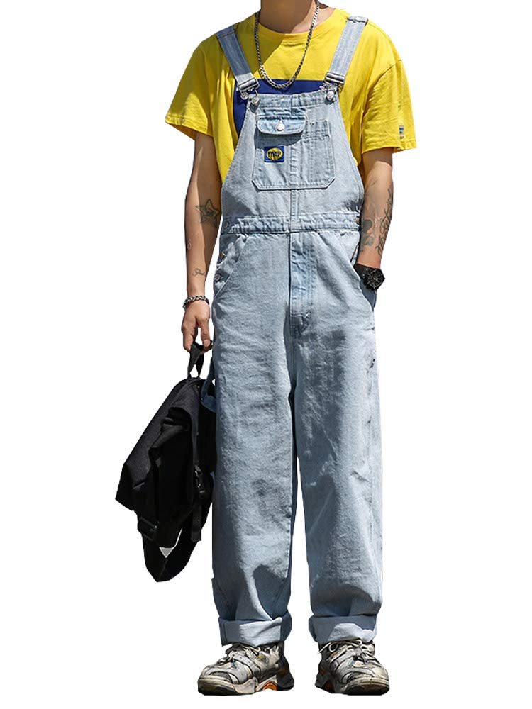TIDEWORD and Denim Street Style with Plus Loose Light Blue Men's Women's Overalls, All-in-One Jeans, Pockets, Sizes, Casual, Fit, Flattering,