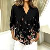 3/4-Ärmel Damenoberteile V-Ausschnitt Shirts Trendy Bedruckte Business Casual Arbeitsblusen
