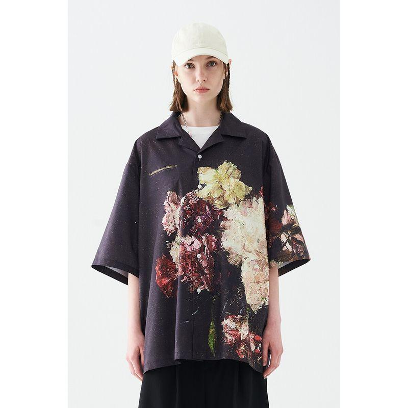 Harshandcruel Holiday Retro Oil Painting Flower Print Cuban Collar Short Sleeve Shirt Su Xinhao Yin Haoyu