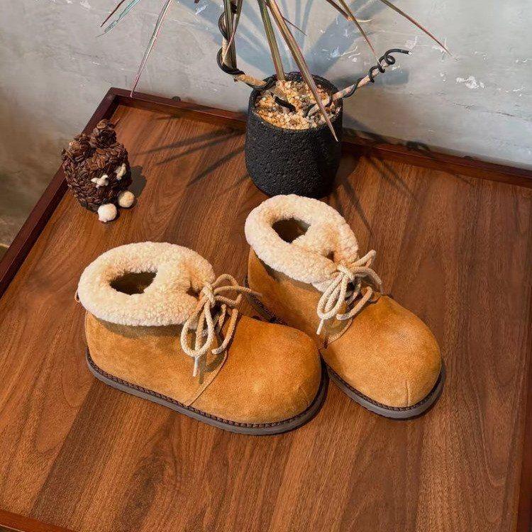 Dicksohlige innere Höhenerhöhung große runde Kopf Schneestiefel Damen Winter neu Samt warm niedlich Brot Baumwollschuhe