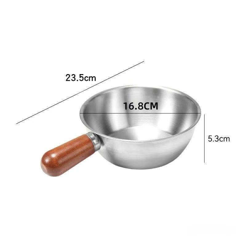 (JJ)1Stk 2025 Neu Edelstahl Kleine Kochpfanne Kochgeschirr Küchenwerkzeug 14CM/17CM Holzgriff Frühstückskocher Küchenwerkzeug