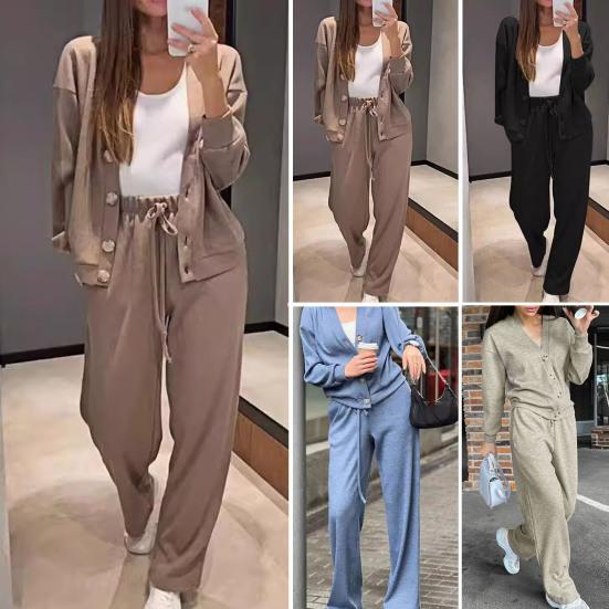 Verbessern Sie Ihren Stil mühelos mit diesem lässigen zweiteiligen Set für Damen, das aus einem langärmligen Cardigan-Oberteil und einer Hose mit weitem Bein besteht und einen schicken und vielseitigen Charme für jeden Anlass ausstrahlt.