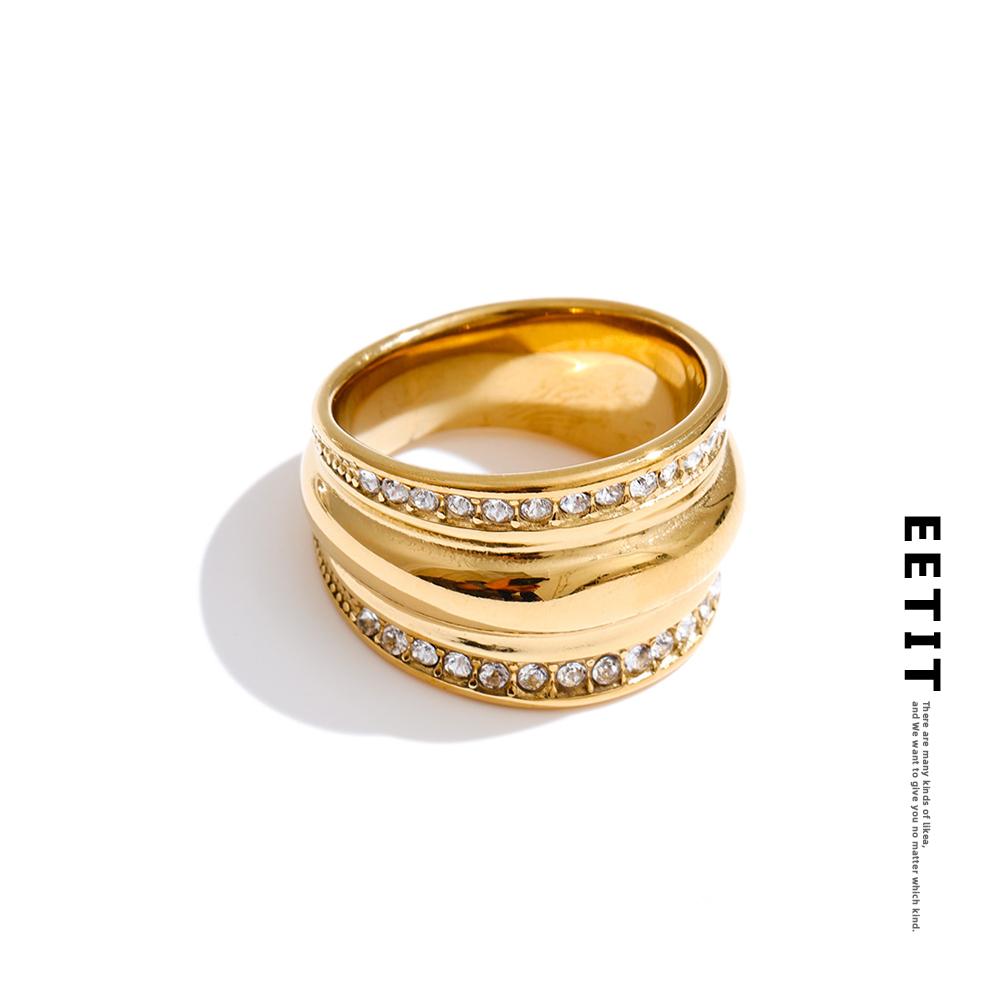 Eetit Size 6789 Stainless Steel Cubic Zirconia Wide Ring 16K & Platinum Color PVD Plated High Quality Popular Finger Jewelry