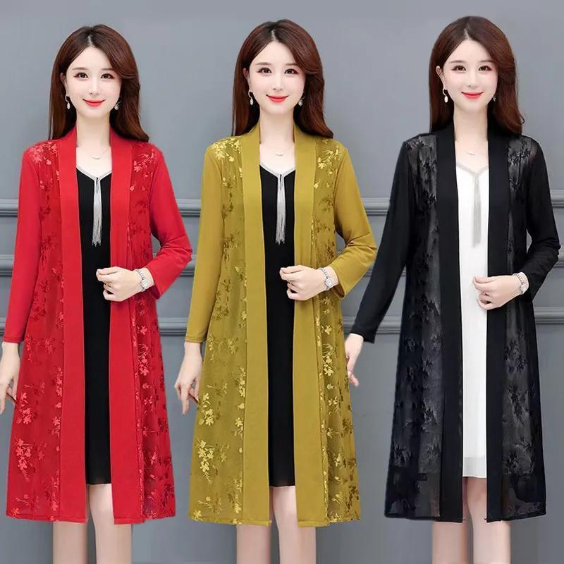 Damen Sommer Oberbekleidung Sonnenschutz Langarm Strickjacke mit Blumendruck Klimatisiertes Hemd Trenchcoat
