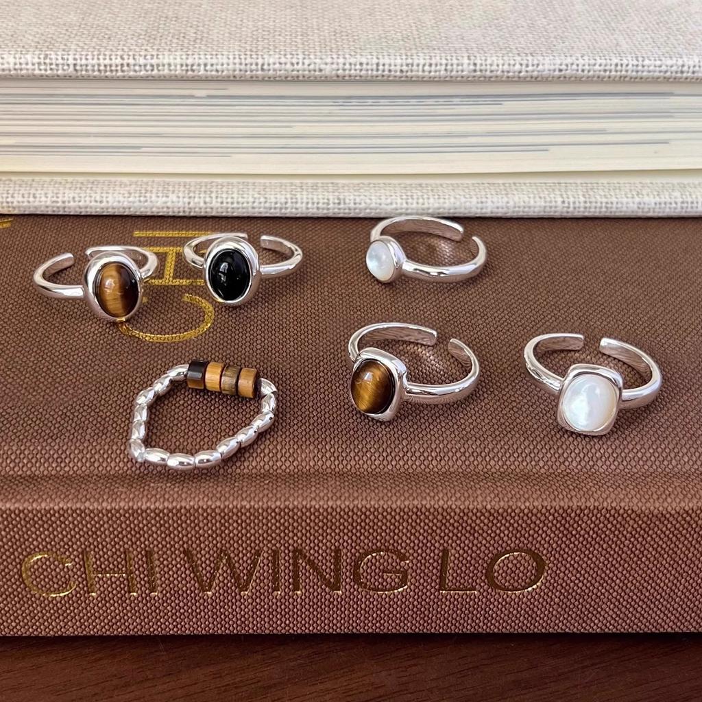 Mother-of-pearl Tiger Eye Ring Women's Foreign Style Cold Wind Niche Unique Vintage Girlfriend Gift Hand Jewelry Accessories