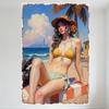 Sexy blonde Frau im Bikini auf Marmorboden Treppenszene Metallschild - Vintage Indoor Wanddeko für Heimbar Pub