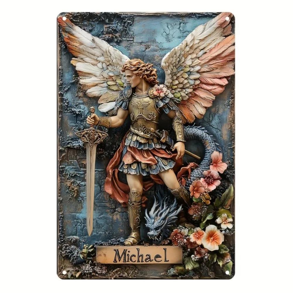 Vintage Archangel Michael Aluminum Sign, Retro Metal Wall Decor for Home, Office, Cafe & Garden, 8x12 Inch, Unique Gift Idea
