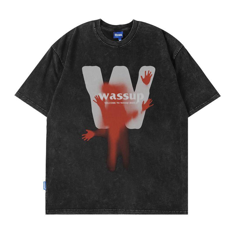 Wassup Heods Trendy Brand Large W Letter Casual Short-Sleeve T-Shirt for Men and Women, Summer American Street Style Versatile Couple Outfit