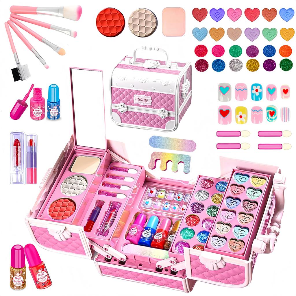 [Schminkset, das Mädchen-Träume wahr werden lässt] Dieses entzückende Schminkset-Spielzeug enthält Lidschatten, Lipgloss, Glitzerpuder, Nagellack, Lippenstift, Nagellack, Fingerlinge, Nagelsticker, Puderschwamm, Rouge, Make-up-Pinsel, Lidschattenpinsel und eine Schminktasche! Mädchen ab 3 Jahren können sich mit diesem Artikel wie Prinzessinnen fühlen.. Perfekt für Rollenspiele zu Hause, mit Freunden, im Kindergarten oder in der Kindertagesstätte!