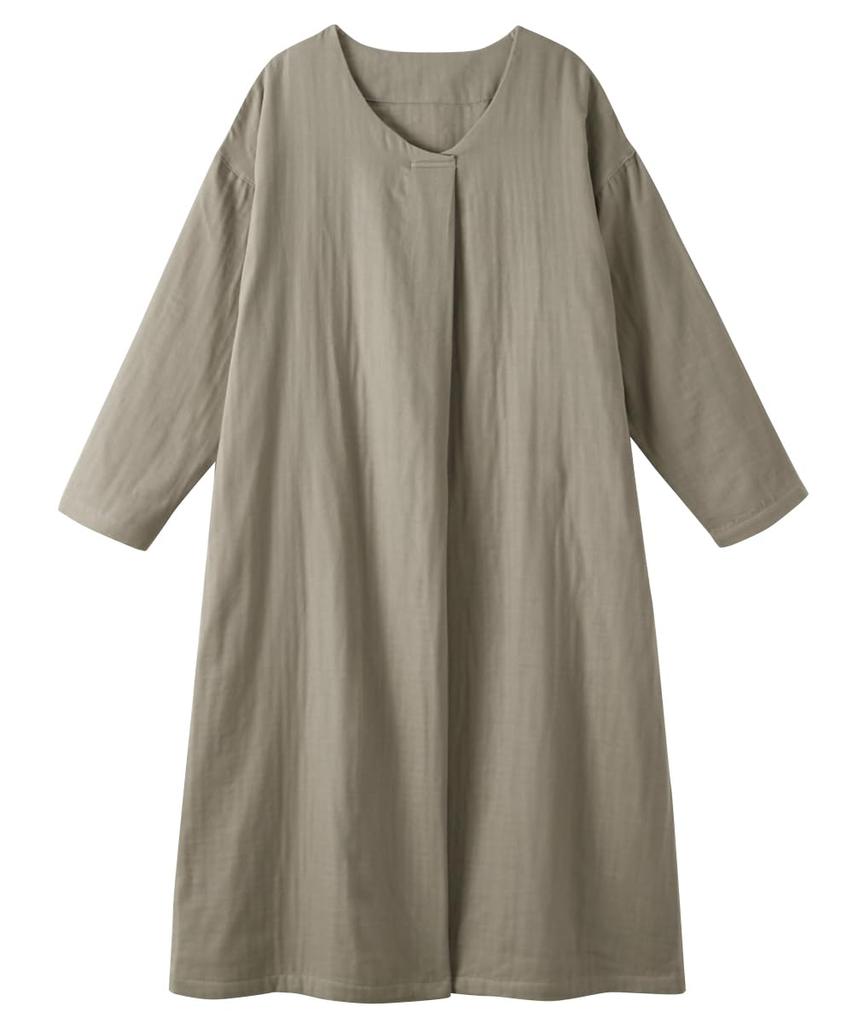 Nissen Cotton Size L Women's Triple-Layered 100% Pajama/Lounge Dress, Greige,