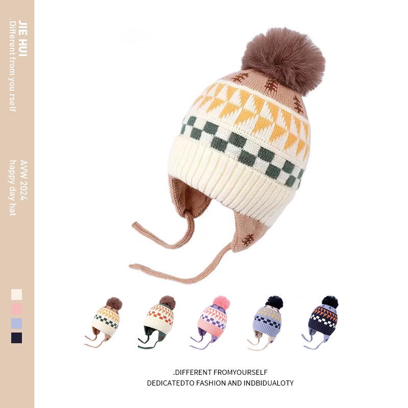 Kinder Winter Wollmütze mit Ohrenklappen: Warmer, winddichter Jacquardstrick für Herbst und Winter