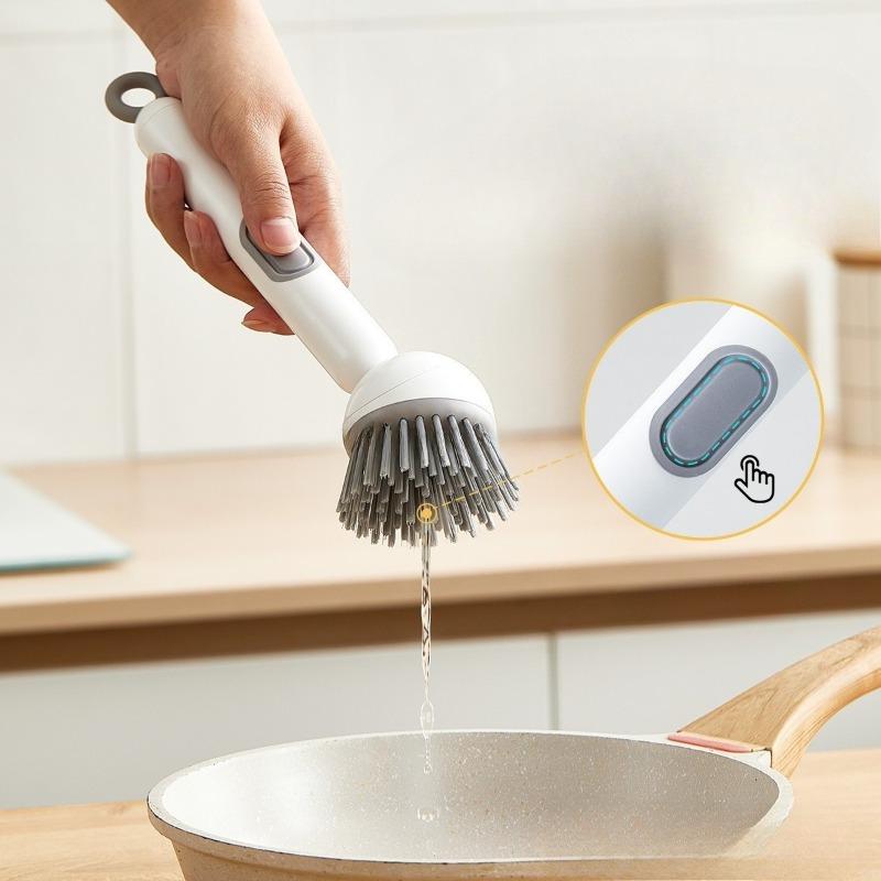 Topfbürste mit langem Griff und Flüssigkeitsfüllung, rotierend, Küchen-Topfwaschbürste, Antihaft-Öltopf, multifunktionale Reinigungsbürste