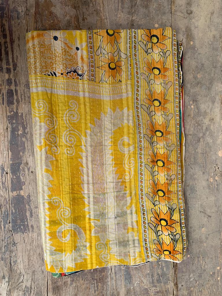Hüllen Sie sich in Komfort und Kultur mit diesem handgefertigten Sari-Quilt aus 100 % Baumwolle, auch bekannt als Gudari. Liebevoll aus upgecycelten Vintage-Saris gefertigt, ist jede Quilt ein Kunstwerk—mit Schichten aus weichem Baumwollstoff, die mit zarten Kantha-Stichen handgenäht sind.. Dieser leichte, wendbare Quilt kann das ganze Jahr über verwendet werden und ist perfekt als Tagesdecke, Überwurf, Picknickdecke oder Wandbehang.. Jedes Stück trägt Geschichten von Indiens textilem Erbe in sich und ist somit nicht nur ein gemütliches Wohnaccessoire, sondern eine bedeutungsvolle Ergänzung für Ihre Dekoration.