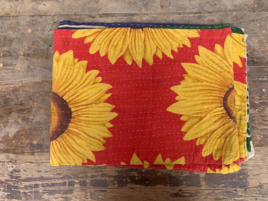 Hüllen Sie sich in Komfort und Kultur mit diesem handgefertigten Sari-Quilt aus 100 % Baumwolle, auch bekannt als Gudari. Liebevoll gefertigt aus upgecycelten Vintage-Saris, ist jede Quilt ein Kunstwerk mit Schichten aus weichem Baumwollstoff, die mit zarten Kantha-Stichen handgenäht sind.. Dieser leichte, wendbare Quilt kann das ganze Jahr über verwendet werden und ist perfekt als Tagesdecke, Überwurf, Picknickdecke oder Wandbehang.. Jedes Stück trägt Geschichten von Indiens textilem Erbe in sich und macht es nicht nur zu einem gemütlichen Wohnaccessoire, sondern zu einer bedeutungsvollen Ergänzung Ihrer Dekoration.