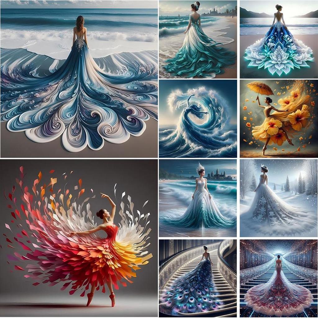 40x40cm 5D DIY Diamantmalerei Set Meeresmädchen Voll Quadratisch&Rund Diamantmosaik Stickerei Kreuzstich Heimdekoration
