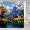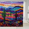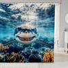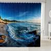 Cartoon Katze Kinder Duschvorhänge,Ozeanwelle Japanischer Ukiyo-e Badezimmervorhang,Ragdoll Abstrakt Streifen Heimdekor,Meerblau Retro