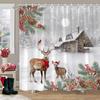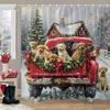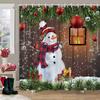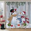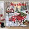 Christmas Snowman Shower Curtain Merry Santa Elf Deer Red Truck Polyester Fabric Printed Bath Curtains Bathroom Decor With Hoo