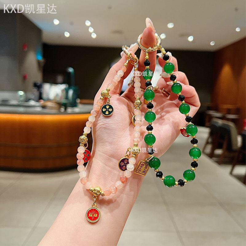 Chinesischer Stil Handgemachte Perlen-Handy-Kette Neues Jahr Handy-Lanyard Handgelenk-Hänger Auto-Schlüsselanhänger Kette für Frauen